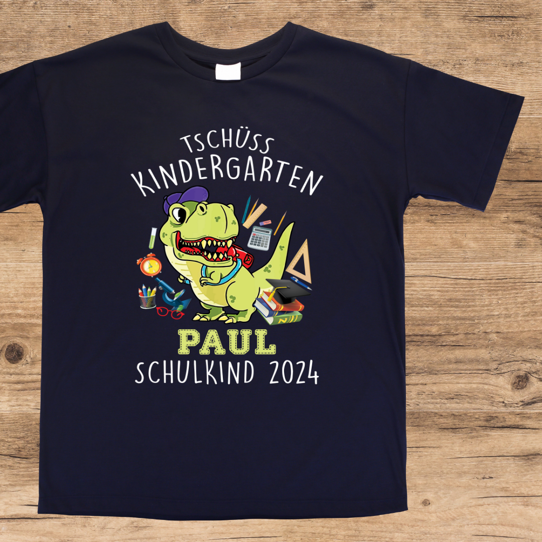 Dinosaurier Schulkind 2024 personalisiertes Kindershirt